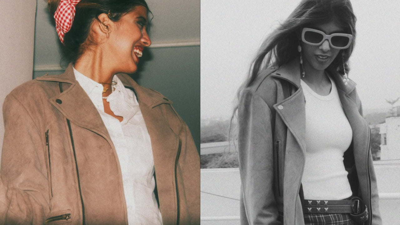Lambskin suede biker jacket with a clean, structured shape and a sharp asymmetric zip. Finished with metal snaps, zip pockets, and a smooth inner lining for everyday wear.